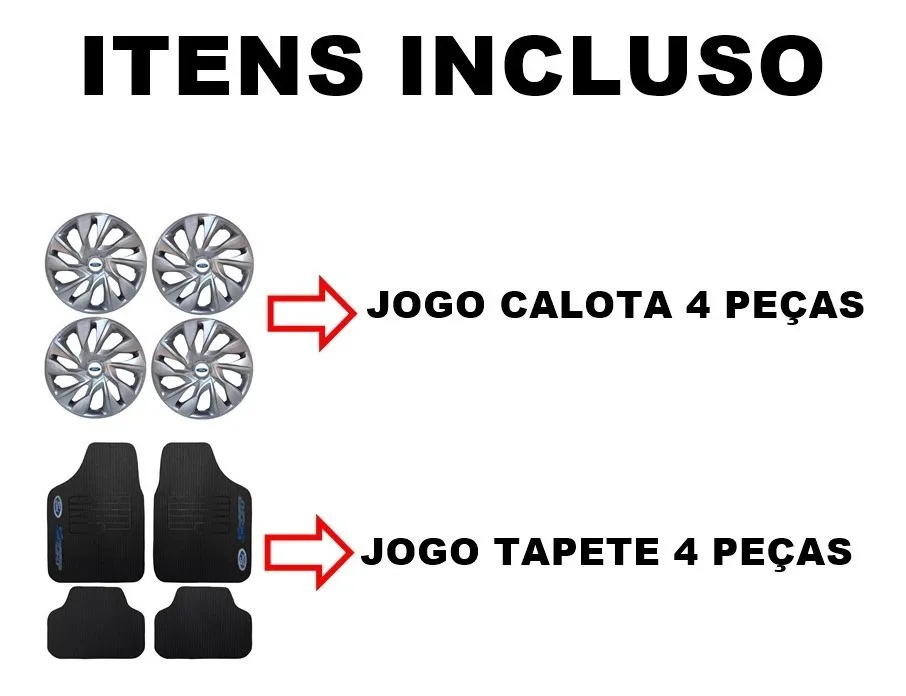 Pensa que você tá levando oito itens (quatro calotas + quatro tapetes) por esse preço. Se fosse comprar tudo separado, ia sair bem mais caro.